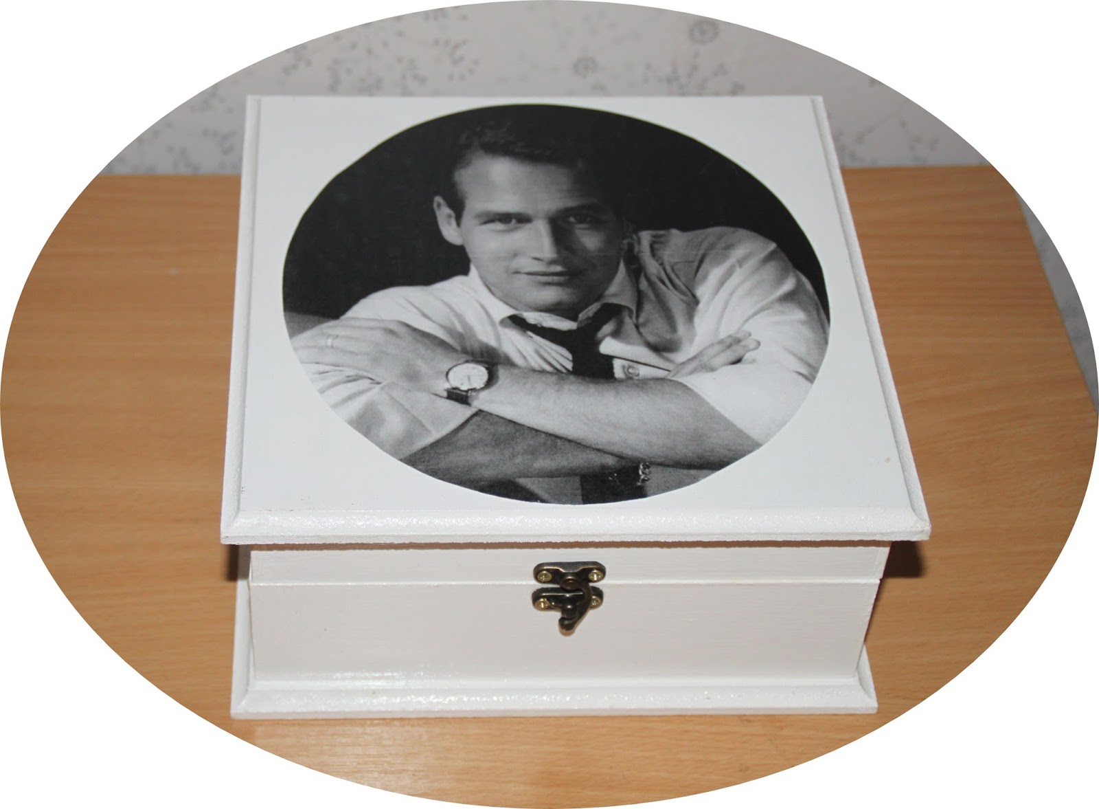 Ne mogu da opišem svoje oduševljenje kada mi je jutros stigla. Presavršena je! Stvarno sam  uživala u saradnji sa Ninom Mališanović koja mi je napravila ovu kutiju za satove. Verujem da se mnogo potrudila s obzirom da je bukvalno prenela iz mojih misli u stvarnost 🙂  Newmanova slika  je krasi iz više razloga. Najznačajnijii je što smatram da je obeležio modu nošenja satova i bio zaštitno lice Rolexa. Mada je i moja zaljubljenost u njega imala izvesnog uticaja :))) Kada vec govorim o tome iskoristicu priliku da spomenem da u tome lezi objasnjenje zasto “sting” u nazivu mog bloga. Pretpostavljam da je vecina ljudi gledala film“The sting” u kom glavnu ulogu tumaci bas Paul 🙂 Ako niste do sada obavezno to učinite što pre. Ovo je bio moj izbor ali Nina daje mogućnost da svako dizajnira svoju kutiju kako želi i nudi različite kutije.