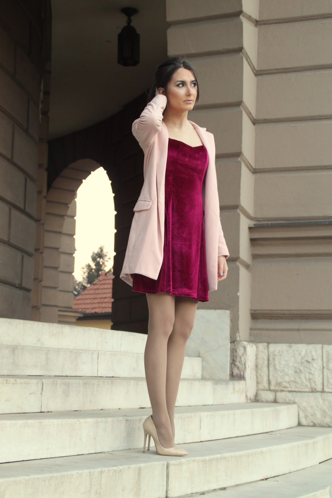 Red wine dress and baby pink coat, maybe I am a goat!?