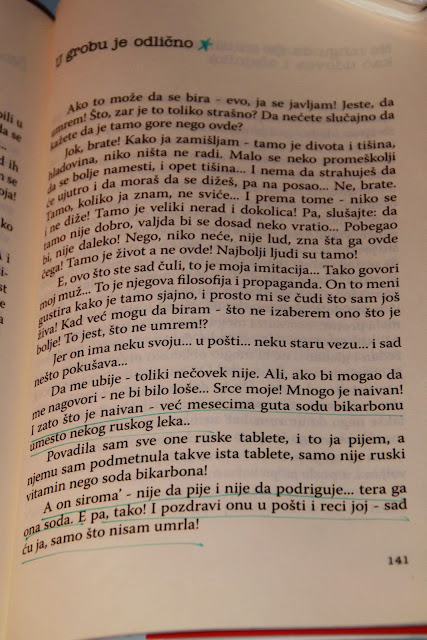 Nikako uobičajena knjiga. Niti knjiga koja ima striktno određen početak i kraj. Ali definitivno ona koja će vam i kada to deluje nemoguće popraviti raspoloženje. Uz pregršt priča i stavova o sličnim situacijama dokazuje da za sve što nas snađe postoji nesagledivo mnogo uglova gledanja. Da nekad naša sreća zavisi upravo od tog ugla. Zadovoljstvo je možda još veće ako se čita u društvu, pa prepoznali se ili ne, moraćete da se nasmejete i to ne jednom. Možda je celom predivnom utisku pri čitanju doprinela činjenica da sam je dobila na poklon od veoma drage osobe. Uz nadu da ćete se prepustiti uživanju u “Jednoj od zvezda rasutog Radovićevog sazvežđa”, kako je Matija Bećković opisao, podelicu sa vama nekoliko podnaslova s ciljem da vas zaintrigiram.”